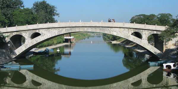 趙州橋座落在河北省南部的洨河上,洨河流經(jīng)趙縣。趙州橋建于隋代(公元581-618年) 大業(yè)年間(公元605-618年),由著名匠師李春設(shè)計和建造,距今已有1400年的歷史,是當今世界上現(xiàn)存最早、保存最完善的古代敞肩石拱橋。趙州橋1961年被國務(wù)院列為第一批全國重點文物保護單位。1991年,美國土木工程師學會將安濟橋選定為第12個“國際歷史土木工程的里程碑”,并在橋北端東側(cè)建造了“國際歷史土木工程古跡”銅牌紀念碑。趙州橋, 又名安濟橋,位于河北趙縣洨河上,它是世界上現(xiàn)存最早、保存最好的巨大石拱橋。被譽為“華北四寶之一”。建于隋大業(yè)(公元605-618)年間。橋長64.40米,跨徑37.02米,券高7.23米,是當今世界上跨徑最大、建造最早的單孔敞肩型石拱橋。因橋兩端肩部各有二個小孔,不是實的,故稱敞肩型,這是世界造橋史的一個創(chuàng)造(沒有小拱的稱為滿肩或?qū)嵓缧停蛏嫌泻芏嗟臇|西,類型眾多,豐富多彩。