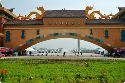 東方神龍樂園位于運河唐人街西側(cè),占地面積1000畝,計劃總投資15.1億元,目標(biāo)是達到國家5A級景區(qū)標(biāo)準(zhǔn)。該項目由韓國旅游開發(fā)研究院策劃設(shè)計,整體設(shè)計中涵蓋著四個“世界第一”,體現(xiàn)了景區(qū)規(guī)劃設(shè)計的前瞻性、高端性,規(guī)劃設(shè)計了世界上最高的景觀樹、最快的過山車及角度最小速度最慢的過山車。東方神龍樂園深入挖掘中華民族“龍”的文化主題,并運用現(xiàn)代高科技手段,編導(dǎo)獨具特色的大型演藝節(jié)目,打造中華民族龍文化產(chǎn)業(yè)園,給游人以強烈的視覺震撼。該項目設(shè)計包括冒險森林、彩虹樂園、天方夜譚、火山公園、冰河時代等景區(qū)百余項娛樂項目。規(guī)劃設(shè)計中,70%以上的娛樂項目均設(shè)在室內(nèi),進而彌補了北方冬季部分旅游活動項目不能開展游人稀少的缺陷。