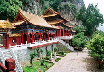 天桂山的青龍觀,原是為明朝末代崇禎皇帝修建的歸隱行宮。明朝末年,李自成起義嚴(yán)重動搖了明廷皇權(quán)。崇禎皇帝朱由儉在義軍紛起逼近北京的情況下,預(yù)感江山不穩(wěn),便密派心腹太監(jiān)林重萆出京選隱地修建行宮,以防不測。故所有的建筑既有皇宮之名,又有道教之稱,是中國唯一政教合一的古建筑群。清初一百年間,青龍觀屢有增設(shè)和修葺,擁有大小建筑十二處之多。其中真武殿、蒼巖殿和大光明殿共為青龍觀的三大建筑。在這座集皇家園林、道教宮觀和大自然秀麗景觀于一體的風(fēng)景名勝區(qū)內(nèi),青龍觀的龐大建筑群,依山就勢,隨崖而建,真可謂陡崖鑲金,絕壁嵌珠,巧奪天工。天桂山既有雄秀交融的天然風(fēng)光,又有皇家園林的高貴氣韻和道家仙山的莊嚴(yán)氣勢及神秘色彩,俗有“皇家道院”之稱,“北方桂林”之譽(yù)