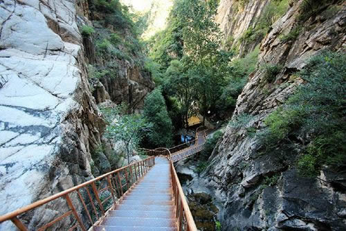 被譽為“天下第一峽”的百里峽是野三坡獨具特色的景區(qū)之一。在“雙崖依天立,萬仞從地劈”的百里“構(gòu)造嶂谷”中,不僅有“老虎嘴”“一線天”“回首觀音”“天生橋”,還有涌泉飛瀑,跌宕聲聲的峽谷溪流和生性好動的小松鼠及山巔枝頭的鳥鳴。生態(tài)環(huán)境原始自然。峽谷內(nèi)旅游設(shè)施與自然相協(xié)調(diào),安全環(huán)保。置身其谷,步游路隨山峰而轉(zhuǎn),溪水繞游路而行,山水相依,植被茂密,空氣清新,世間無比。游在其中,頭頂絕壁萬仞、藍天一線;腳踏鵝卵石甬路,還可足療保;路邊泉水叮咚、碧水清潭;身旁高山飛瀑、澗流潺潺;崖壁上灌木成林、青檀倒掛懸,獨根草、野海棠和羊齒蘭猶如墨彩涂于壁間,密如綠毯。