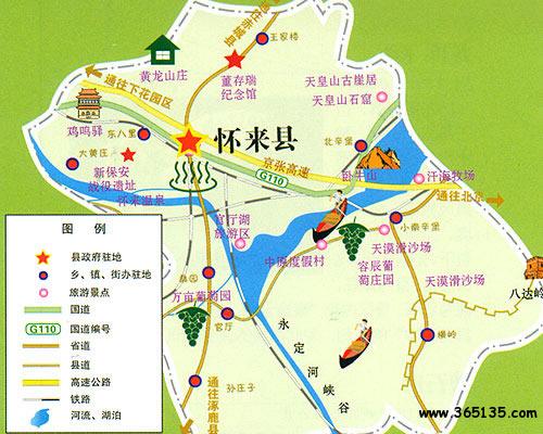 生態(tài)環(huán)境良好:該縣地處北京上風(fēng)上水,空氣清新,山清水秀,景色怡人,具有良好的生態(tài)環(huán)境。全縣林地面積129.5萬多畝,森林覆蓋率達(dá)到30.4%。位于懷來盆地中央的官廳水庫猶如一顆璀璨的明珠鑲嵌其中,環(huán)水庫周圍擁有梨園、海棠園、葡萄園等眾多花果園,臥牛山旅游度假、太師莊休閑度假、永定河峽谷漂流、天漠滑沙旅游多個(gè)各具特色的旅游景點(diǎn)、景區(qū)交叉點(diǎn)綴。集葡萄種植、加工、旅游于一體的容辰葡萄莊園,被國家批準(zhǔn)為首批農(nóng)業(yè)旅游示范點(diǎn)。天皇山、白龍?zhí)兜茸匀伙L(fēng)景區(qū),植被茂盛,風(fēng)景秀美。黃龍山莊花香幽遠(yuǎn),生態(tài)觀光獨(dú)具特色。
