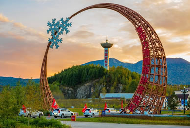 行車25公里后亞布力滑雪場山門,左右兩側(cè)會(huì)出現(xiàn)大小不一的很多私人雪場,繼續(xù)開至最頂端到達(dá)中國最大的亞布力體育局滑雪場。