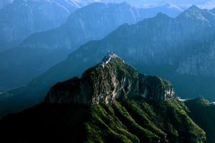 天界山游覽區(qū)是道教發(fā)祥地之一,在海拔1570米的云際孤峰之上,建有青石構(gòu)造、全石無梁、八卦窿頂、鐵瓦覆鼎、鐵鑄玄武神像的“玄天上帝”大殿等宏大的建筑群。鐵鑄建筑與器物眾多,一切都以鐵著稱聞名,被譽為“天下第一鐵頂”。道教信仰“南金頂北鐵頂,南頂在武當,北頂在太行”之說!疤煜碌谝昏F頂”的懸崖絕壁上的廟宇建筑群落遵循道教“道法自然”精髓,依山就勢,高低布局,層次錯落有致,建筑風格典雅古樸。
