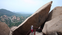 懸針石,位于南山主峰鳳凰臺西望花嶺上,為上寬下窄,高28米的獨(dú)立石柱,似鋼針倒立。