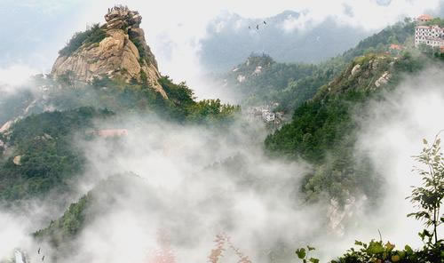亦名雞公頭、雞頭石。海拔765米,登上峰頂,全山風(fēng)貌一覽無余。報曉峰的山腳下題有一首詩為“慢上雞公山,快登報曉峰,這邊風(fēng)景好,暑夏有秋風(fēng)”,雞公山就是因?yàn)檫@座山峰而得名的,報曉峰就是雞公山的象征。