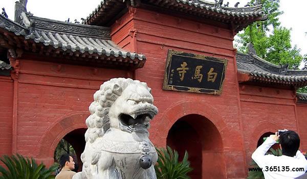白馬寺:位于洛陽市東郊十二公里處的白馬寺村北側(cè)。始建于東漢明帝永平十一年(公元六十八年),是佛教傳入中國后由封建官府營建的第一痤寺院,距今已有近兩千年歷史。白馬寺名稱之由來,諸說不一,據(jù)《洛京白馬寺祖庭記》碑和《巍書,釋老志》.《洛陽伽蘭記》等記載,漢明帝夜夢金人,頂有白光.飛行殿庭。大臣傅轂說;西方有神.名曰佛,“形如階下所焚”。帝派蔡喑、秦景出使酉域拜求佛法,獲佛經(jīng),佛法并拜請攝摩騰、竺法蘭二位佛學(xué)大法師,來到京都洛陽,最初安排在“鴻臚寺”,暫住譯經(jīng)傳教。因譯經(jīng)傳教成績卓著,明帝赦建了中國第一座寺院,即取“鴻臚寺”之“寺”字,又因白馬馱經(jīng)來而取“白馬”冠于“寺”前,稱“白馬寺”。白馬寺從漢明帝創(chuàng)寺至今,在近兩千年的漫長歲月里,曾飽經(jīng)滄桑,數(shù)廢屢興。新中國成立后,黨和人民政府先后于1952年、1954年、1959年、1973年多次拔?顚υ撍逻M(jìn)行修葺,1961年白馬寺被列為全國重點(diǎn)文物保護(hù)單位。現(xiàn)在白馬寺不但是中外游客游覽場所,而且也是中外佛教信徒瞻仰朝拜的圣地。