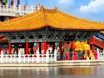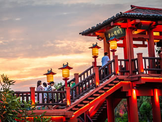 八闋經(jīng)典宋詞和一幅《清明上河圖》串聯(lián)的畫面,將精心選擇的北宋印象包含進(jìn)去,以喚起一個(gè)民族對(duì)興衰的思考和渴望崛起的激情!洞笏巍|京夢(mèng)華》實(shí)景演出選擇在清明上河園皇家園林區(qū)的景龍湖上,充分利用了亭臺(tái)樓榭、水榭橋廊,構(gòu)成了一個(gè)完整的古典實(shí)景劇場(chǎng)。