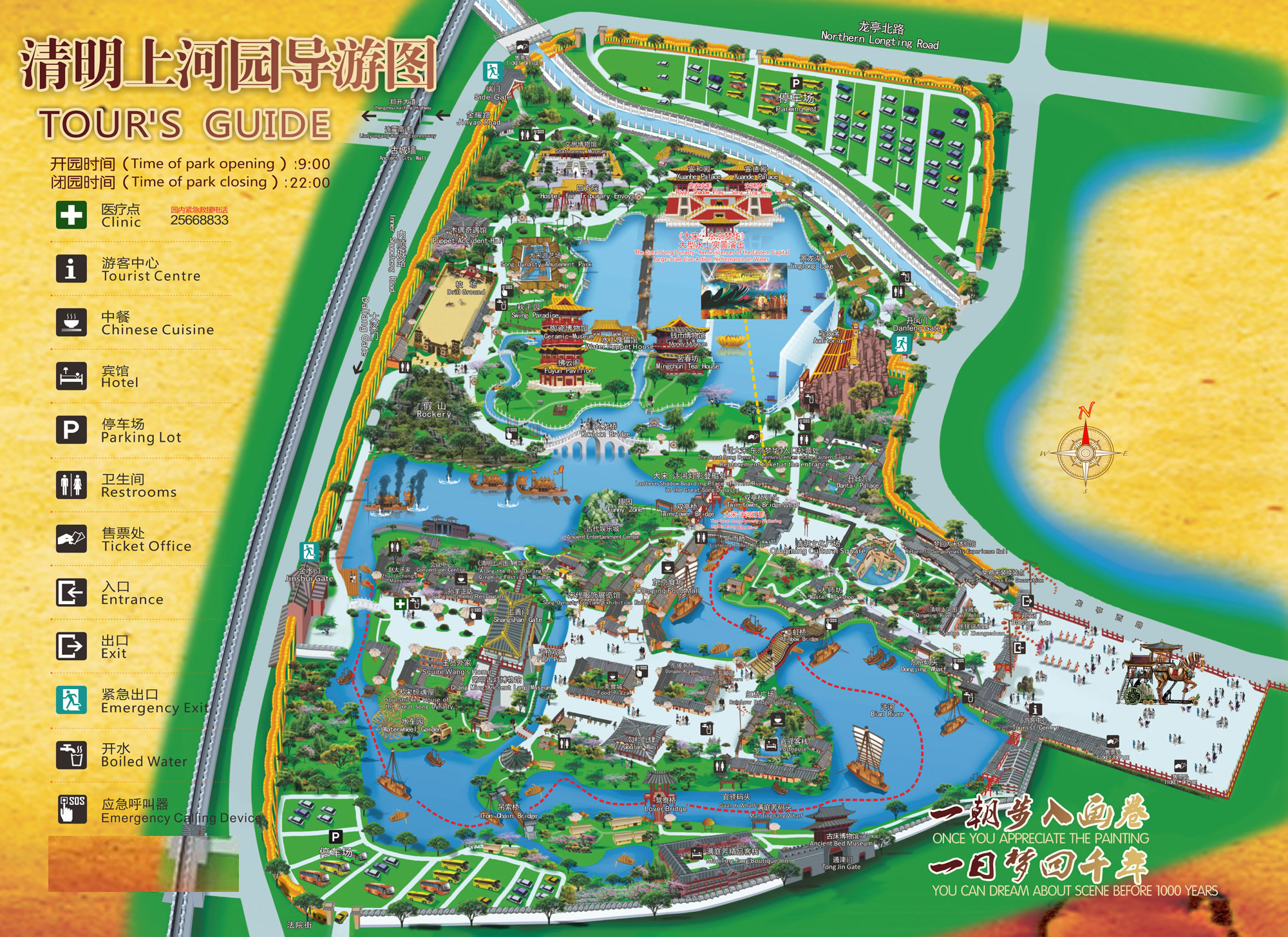 連霍高速、大廣高速、日南高速、鄭民高速均可到達(dá)清明上河園,導(dǎo)航清明上河園端門,進(jìn)入北側(cè)1號(hào)停車場(chǎng)。