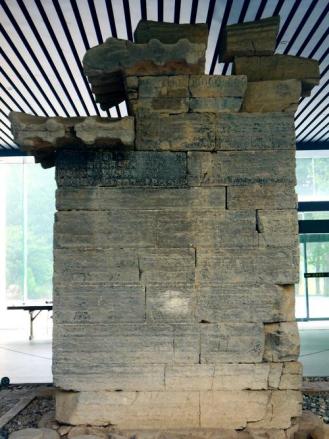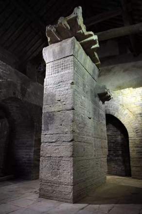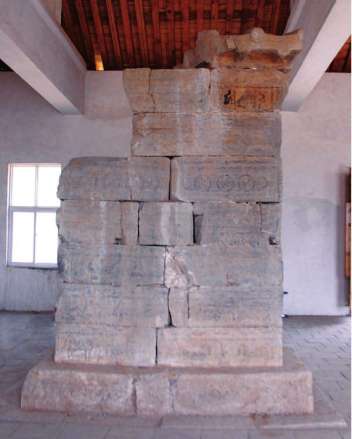 觀星臺南側的周公測景臺是古代祖先測量日影、驗證時令季節(jié)的儀器。分臺座和臺柱兩部分,臺座叫圭,臺柱叫表。夏至日這一天的正午,在測景臺的周圍看不到表的影子,所以,稱此臺為無影臺。又因為無影,我們的祖先就認為這里就是地中。