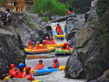 豫西大峽谷漂流----豫西大峽谷斥資近億元打造的國內(nèi)頂級漂流,集“巖洞漂流、暗河漂流、峽谷漂流、瀑布漂流、回旋漂流”五大特色于一體,漂流河全程6公里,穿越3處穿山巖洞,經(jīng)過2處回旋漂流,飛躍白龍瀑、九曲瀑、大淙瀑。從起漂碼頭到第一級渡口,約有一公里的平緩水域,水勢潺湲。其后水流順勢而下,則由不得你不瘋狂,不尖叫!漂流河道時而平緩安靜、波光粼粼如掩面嬌羞的少女;時而飛流直下,偏偏輕舟瞬時激起千層白浪,倏然之間,乖順的輕舟突然間就成了桀驁不順的烈馬,肌肉緊繃,左沖右撞。尖叫之聲隨之響徹于山谷之中,但卻動聽如天籟之聲。