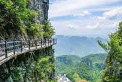 絕壁長廊,又叫“絕壁棧道”,始建于2007年10月,全長488米,118個臺階。位于海拔1700余米、凈高差300余米之絕壁山腰間。該工程既汲取了巴蜀古棧道營造法,又結(jié)合現(xiàn)代鋼筋砼施工之先進(jìn)工藝,科學(xué)安全,凝聚著當(dāng)代開發(fā)創(chuàng)業(yè)者的勇氣與智慧。沿棧道游覽,一路可以欣賞武陵風(fēng)光。該棧道共有七道彎八道拐,寓意是:路七彎八拐,心始終如一。歌曰:北斗七星有七斗(dǒu),絕壁棧道有七抖(dǒu);經(jīng)過一番驚嚇后,人生道路手拉手。