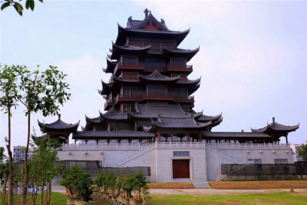 “圓通”一詞來源于佛典中的“圓通菩薩”該建筑于2009年上半年破土動工,是由宮殿式石臺座和紅木榫卯結(jié)構(gòu)組合而成,其風(fēng)格為內(nèi)五層外三層四滴水樓閣式建筑,是中國大型傳統(tǒng)木結(jié)構(gòu)建筑之一。此建筑基座長寬各60.8米,占地4139平方米,高60余米。除了將請進(jìn)25尊圓通菩薩外,此前運至歸元寺的一塊重達(dá)3.2噸的“鎮(zhèn)寺之寶”和田玉將被打造成一尊2噸重的彌勒佛像一并在這里展出。2011年8月26日圓通閣已圓滿舉辦“上梁”儀式,預(yù)計在2012年完工。