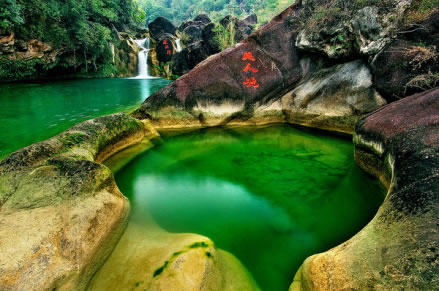 美人谷由一系列的深潭、瀑布、奇石、幽洞組成,是一個(gè)以山水為主的峽谷型生態(tài)休閑游覽區(qū),特別是由數(shù)十個(gè)氣勢磅礴的瀑布組成的瀑布群,成為華中地區(qū)的奇觀。