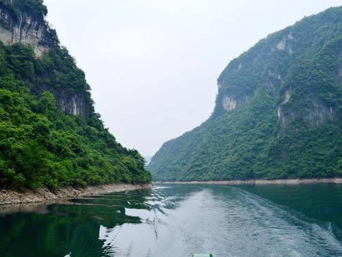 從隔河巖碼頭上船,便開(kāi)始了浪漫的清江之旅。船從大壩右側(cè)駛?cè)胍坏缻{谷,這是清江畫(huà)廊第一景——倒影峽。峽長(zhǎng)5公里,水靜谷幽,山峰陡峭,處處皆畫(huà)。倒影峽水平如鏡,魚(yú)游枝頭鳥(niǎo)宿水的畫(huà)面,隨處可見(jiàn)。兩岸的巖石形成獨(dú)特的天然石林景觀,主峰有文峰倒影,駱駝飲水,孔雀開(kāi)屏。巫靈大佛等自然景觀。倒影峽因山得名,這座山叫作文峰山,陽(yáng)光燦爛的時(shí)候,它雄勁的身姿便倒映在清江之中,故此處稱(chēng)為文峰倒影。隔河巖大壩蓄水后,便被稱(chēng)為倒影峽了。