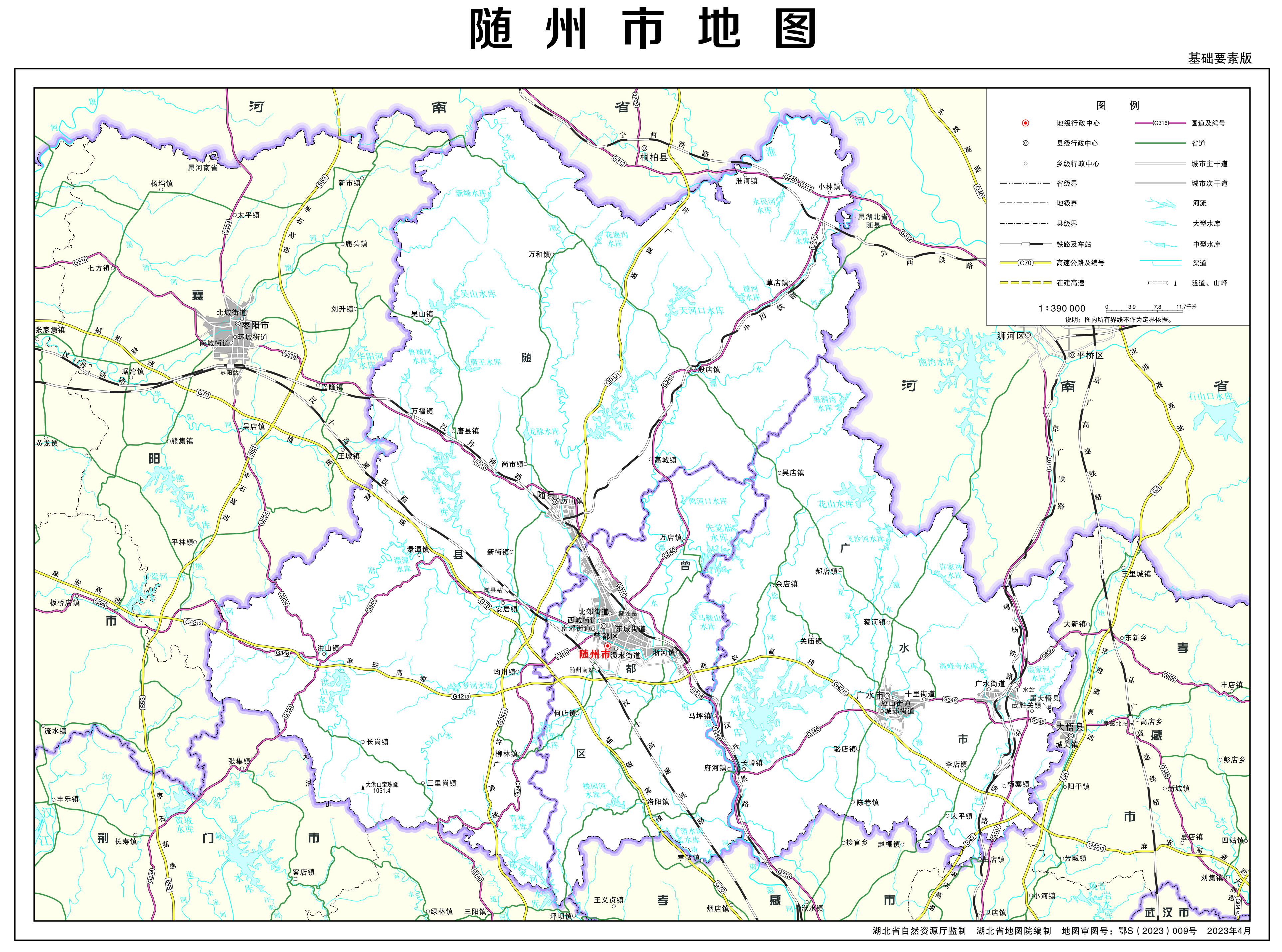 隨州市轄1個區(qū)、1個縣、代管1個縣級市: