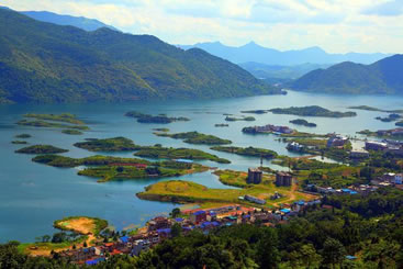 它遠(yuǎn)離城市,湖內(nèi)碧波萬傾,水中仙島競(jìng)秀,兩岸青山峽嶼,山中溶洞幽深,是不可多得的世外桃源。