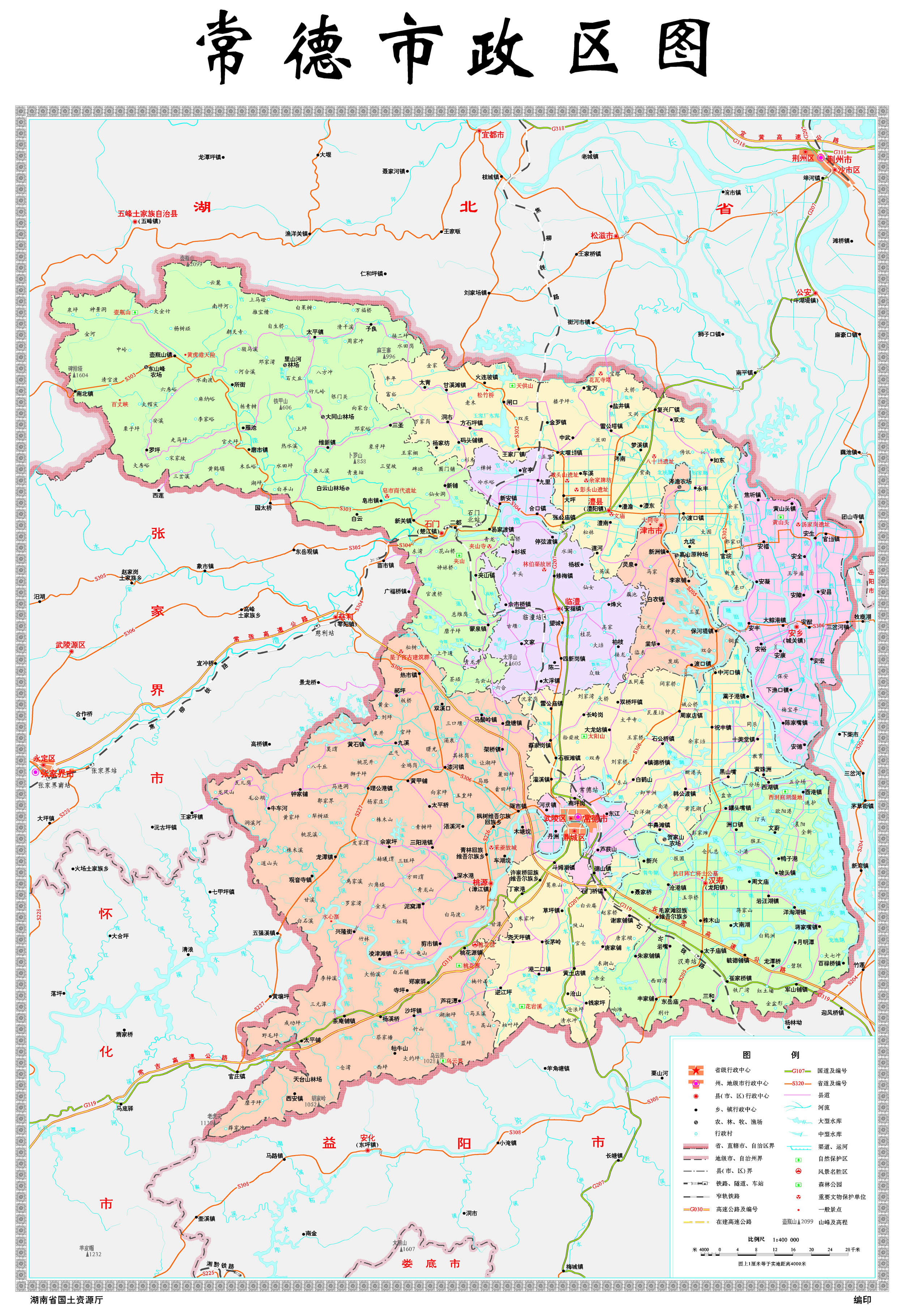 常德市轄2個市轄區(qū)、6個縣,代管1個縣級市: