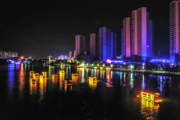 東江花月夜是東江湖旅游發(fā)展集團有限公司在市委、市政府的堅強領導和有力支持下,依托東江灣省級旅游度假區(qū)傾心打造的一款夜間文旅消費產(chǎn)品。項目內(nèi)容主要有:夜間竹筏漂流、畫舫游、夜間演藝以及水上自行車、水上跑車、帆船、槳板、休閑皮筏艇等,涵蓋餐飲、茶道、清吧、娛樂、演藝等各個消費鏈條。規(guī)劃綜合投資2億元通過2-3年努力,將項目打造成為省內(nèi)外知名的夜間文旅 IP。