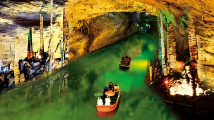 響水河是黃龍洞內(nèi)三條地下陰河中的一條,位于第二層。它全長(zhǎng)2800米,平均水深平6米,最深處有12米,目前乘船游覽其中的一段為800米,時(shí)間約8分鐘左右。響水河平均水溫常年在攝氏16度左右,盛產(chǎn)國(guó)家二級(jí)保護(hù)動(dòng)物娃娃魚(yú)和通體透明的“玻璃魚(yú)”。蕩舟響水河,沿途充滿(mǎn)神秘誘惑的風(fēng)景,如龍王金盔、海螺吹天等景點(diǎn)都值得您慢慢欣賞和品味。空谷幽邃,岸危穹高。忽仰忽傾,若明若暗,恍若回到混沌的遠(yuǎn)古時(shí)代。1992年聯(lián)合國(guó)世界自然遺產(chǎn)專(zhuān)家盧卡思考察響水河時(shí),稱(chēng)贊道:“黃龍洞是我見(jiàn)到的最漂亮的溶洞,還有這么美的陰河,真是不可思議!”