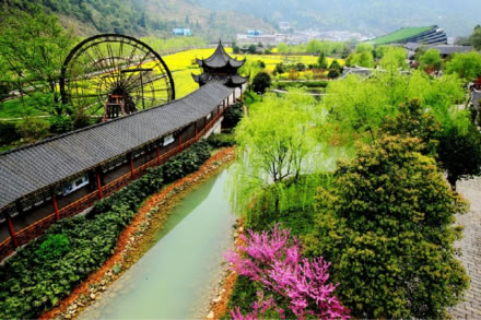 水車(chē)悠悠的翠谷,土家文化的寶庫(kù)。數(shù)十架大大小小、各式各樣的水車(chē),星羅棋布地散落在清澈的溪澗里,在悠悠潺潺的溪流中吱吱啞啞地吟唱著古老的歌謠。使游人在驚嘆的同時(shí)仿佛進(jìn)入一個(gè)古老的世界,因此喚醒回歸自然之幽情。