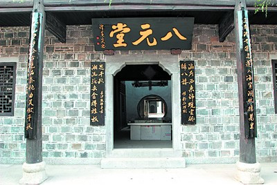八元堂,又名寧鄉(xiāng)會館,座落在古鎮(zhèn)保健街上,建成于清咸豐十一年(1861年)。在晚清時期,靖港是溈水河入湘江的天然良港和商埠,昔日寧鄉(xiāng)的谷米、煤炭、油鹽等都是在此集散,來靖港從業(yè)的寧鄉(xiāng)人接近四千人,“西接湖垸,金稻銀棉憑集散;東依湘溈,風(fēng)帆云影任驅(qū)馳!北闶窃娙藢Φ锰飒毢竦木父酃沛(zhèn)的頌贊,它在當時是一個管理寧鄉(xiāng)船舶和谷米銷售的據(jù)點,也是為來靖港的寧鄉(xiāng)老鄉(xiāng)下榻休息和聯(lián)絡(luò)鄉(xiāng)情等的服務(wù)機構(gòu)。