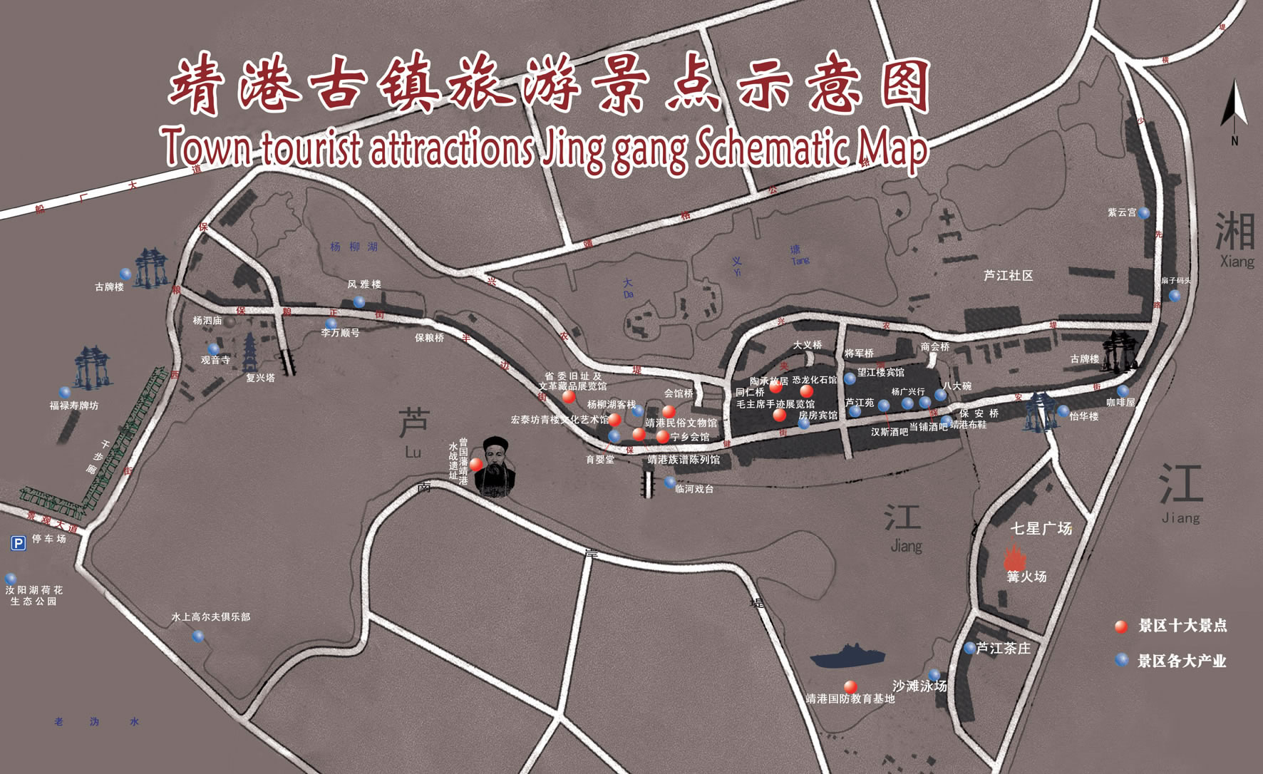 2、由長沙經(jīng)金星大道或雷鋒大道至望城,過溈水大橋后右沿湘江大堤北行9公里到達靖港古鎮(zhèn)東入口“七星廣場”。 |