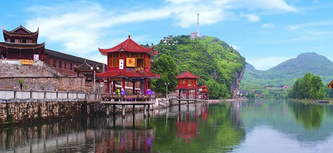邵陽市歷史上的“寶慶十二景”,多點綴于資江兩岸,環(huán)布市區(qū)。由雙清公園、水府廟小游園和東塔公園連綴而成的城區(qū)風景區(qū),兼有人工之美和自然之秀。水府廟前,雙江匯流;資江南北,兩塔并峙;江流蜿轉(zhuǎn),四橋飛虹;近水遙山,綠意蔥籠。市郊附近的溶洞亦為奇觀。境內(nèi)辟有新寧崀山、城步南山、武岡云山、新邵白水洞等風景區(qū),60多個旅游景點。全國道教七十二福地之一的武岡云山歷來香火鼎盛。有兩華聳翠、一瀑飛濤、仙橋橫漢、杏塢藏春等10景,野生動植物品種繁多,被辟為國家森林公園。城步南山象一塊碧綠的翡翠鑲嵌在湘西南邊陲,芳草如茵,牛羊成群,既具北國草原的雄渾,又不失江南草山的靈秀,為回歸綠色旅游的最佳生態(tài)環(huán)境。新寧崀山系典型的丹霞地貌景觀,集奇峰、幽谷、碧水、丹崖于一體,方圓達100平方公里,紫霞洞曲徑通幽,駱駝峰高聳入云,牛鼻寨的“天下第一巷”鬼斧神工,堪稱“亞洲第一”的仙人橋渾然天成。登八角寨遠眺,群峰幽谷,丹崖秀水,盡收眼底;泛舟扶夷水上,澄江如練蜿蜒于百里畫廊。全國著名經(jīng)濟學家厲以寧至此油然感慨:“一線天梯驚煞人,幽谷深處凈無塵;新寧別有奇峰在,不讓武陵獨占春!鄙坳柹酱ǖ乩恚沱愄斐。崀山景區(qū),是天下風光之勝;南山牧場,為江南草山明珠;黃桑森林王國,云山佛門圣地,綏寧神奇綠洲,龍山地下藏金。銀杉國寶,鐵杉群落,自然景觀,民族風情。泛舟資江三峽,尋幽舜皇秀色,無不風光奇絕,引人入勝。邵陽更是一方人文薈萃之區(qū)!耙鹿谕趸,耕鑿古風同”。邵陽開化甚早,民風淳厚,智慧勤勞,尚武崇文,文明綿遠,代有才人。唐代胡曾,工詩味史;車氏一家,才俊滿門;清代魏源,倡師夷制夷之說;民元蔡鍔,有護國倒袁之勛。比及民國,志士接踵。御外侮而謀解放,袁國平沙場獻身;求真理而競自由,尹如圭血寫春秋。他們都是邵陽人杰,千古風流,民族精英。