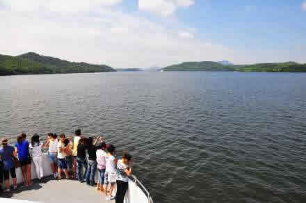 天目湖旅游度假區(qū),位于蘇、浙、皖三省交界處的江南歷史名城,溧陽市境內,距市區(qū)僅八公里。天目湖東臨煙波浩渺的太湖,北望工業(yè)發(fā)達的常州,西接六朝古都南京,南連蜿蜒起伏的天目山脈。天目湖旅游度假區(qū)開發(fā)建設于一九九二年四月,整個度假區(qū)的范圍為三百平方公里,其中包括沙河和大溪兩座國家級大型水庫。這兩大水庫地處天目山的余脈,從空中鳥瞰恰似兩顆明珠鑲嵌于溧陽大地。天目湖湖水來源于蘇、浙、皖三省交界的南山地區(qū),二百五十平方公里的河澗水匯集成湖,總庫容量為三億立方米,總長度為十三公里,水庫最深處為二十八米,平均深度為十米左右。湖區(qū)陸地部分為安山巖和石灰?guī)r,地形較為低緩。湖區(qū)群山環(huán)抱,湖水清冽。湖岸蜿蜒曲折,湖內布滿大小島嶼。區(qū)內奇花異草,色彩繽紛,野生動物,棲息繁衍,形成完整與和諧的生態(tài)系統(tǒng)。