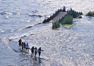 景區(qū)西部一天然水灣,建有萬浪橋和曲堤。凌波漫步,長浪拍岸,每當湖風吹起,水濺珠飛,恰似雪花紛飛。傍晚,又可見夕陽歸舟,漁舟夜泊之趣。側有王昆侖紀念館、萬方樓、廣福寺、陶朱閣等名勝古跡。