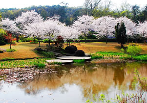 櫻花谷位于黿頭渚景區(qū)鹿頂山北麓,與中日櫻花友誼林毗鄰,又融為一體,占地20萬平方米,植有68個品種的櫻花3萬余株,是中國最大的櫻花專類園。櫻花谷建有賞櫻樓、躡云閣、繁英軒、簇春橋等建筑。