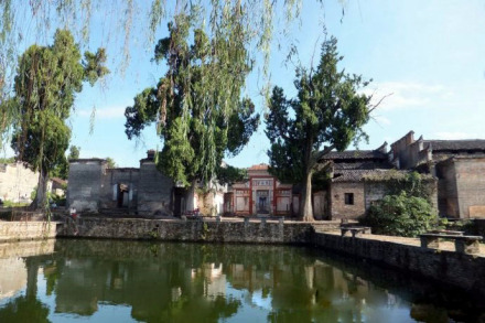 釣源古村位吉安市城西17千米處(中國(guó)歷史文化名村AAAA級(jí)風(fēng)景區(qū))。北宋年間,與歐陽(yáng)修同宗的歐陽(yáng)氏后裔在此肇基,距今近千年。村人尊歐陽(yáng)修為宗,村內(nèi)建有文忠公祠堂,“文行忠信”牌匾高懸。村莊建筑東西南北向,布局呈八卦圖形,宛如迷宮。青石板鋪成的巷子前窄后寬,150余幢猶存的贛派建筑屋角皆為弧形,古建筑內(nèi)外亦有木雕、石雕、木刻、石刻、彩繪和鎦金字畫(huà)。