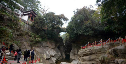 廬山石門澗位于廬山西麓,素稱廬山西大門。海拔400米,景區(qū)面積一萬余畝、景觀百余處。因天池山、鐵船峰對(duì)峙如門,內(nèi)有瀑布而得名。集“雄、奇、險(xiǎn)、奇、秀”于一體,是一座地質(zhì)變化、生物進(jìn)化、自然造化、歷史文化的綜合大觀園,有“匡廬絕勝”、“山水絕勝”之美譽(yù)、古譽(yù)廬山第一景。石門澗瀑布是廬山眾多瀑布中最早錄入史冊(cè)的。兩千多年前的《后漢書地理》中就有記載:“廬山西南有雙闕,壁立千余仞,有瀑布存焉”。最窄處的“小石門”,兩崖之間僅存一縫,游人入“門”須側(cè)身才能通過。峪谷間,高崖懸流成瀑,深谷積水成湖。潛隱湖底的雜亂怪石與兀立溪澗的巨巖,沿澗巧布,成為“石臺(tái)”,最大的一塊光滑的磐石上可坐數(shù)十人,石上攜有“石門澗”三個(gè)大字。