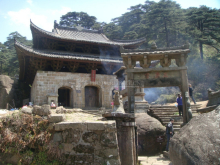 時(shí)至唐朝,道教被朝廷奉為國(guó)教,士穿行往返于大江南北,三清山風(fēng)景名勝區(qū)的道教也隨之興盛起來(lái),香火不斷,朝山香客絡(luò)繹不絕。唐(周)圣元年(639),朝廷為了加強(qiáng)統(tǒng)治,割衢州須江(今稱(chēng)為江山市)之南鄉(xiāng)、常山之西鄉(xiāng)和饒州弋陽(yáng)之東鄉(xiāng),設(shè)玉山縣,遂將三清山風(fēng)景名勝區(qū)劃為玉山縣所轄。其后,方士將化緣所得,在葛洪結(jié)廬煉丹之處營(yíng)建了三清山風(fēng)景名勝區(qū)上第一座道教建筑--老子宮觀(此觀被稱(chēng)為“三清福地”),進(jìn)一步鞏固了三清山風(fēng)景名勝區(qū)在道教史上的重要地位。北宋寧真宗篤信道教,奉老子為太上老君混元上德皇帝。此時(shí),在三清山風(fēng)景名勝區(qū)一帶開(kāi)始出現(xiàn)成批的道教建筑。方士們?yōu)榱思o(jì)念葛洪開(kāi)山之功,在山上建起了葛仙觀,內(nèi)中供奉葛仙翁和李尚書(shū)石像;同時(shí)建起的還有福慶觀、靈濟(jì)廟。尤其值得一提的是,方士們?cè)谔扉T(mén)峰的懸崖之上,用天然花崗巖雕干砌成一座六層五面的風(fēng)雷塔,此塔歷盡千年風(fēng)雨,至今巍然不動(dòng),被譽(yù)為三清山道教建筑中的一顆燦爛明珠。