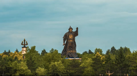 成吉思汗文化園占地面積42萬平方米,依山面水,草木蔥蘢。其中,綠化面積23.9萬平方米,濕地面積9.9萬平方米。有廣場17個、橋梁15座、泰山風(fēng)景石19塊、雕塑九組。園區(qū)內(nèi)主要的景點有泰山石、成吉思汗湖、九曲河、如意廣場、“蘇勒德”、圣山圣祖像等。圣山高16米,占地6萬平方米,動用土方86萬立方米,是松原地區(qū)體積最大的人工山丘。圣山前內(nèi)環(huán)景區(qū)的左右兩側(cè)是高22米、直徑1.9米的青銅雕塑,蒙語稱為“蘇勒德”。圣山上豎立著的便是圣祖像,這座成吉思汗圣像是世界最高的圣祖站立像,主要材料是青銅,高22米,合66尺,重666噸,象征圣主執(zhí)政22年,光輝生命的66歲。成吉思汗左手向前招,右手握大札撒。圣祖像基座上標記著被他征服過的歐亞大陸地圖。
