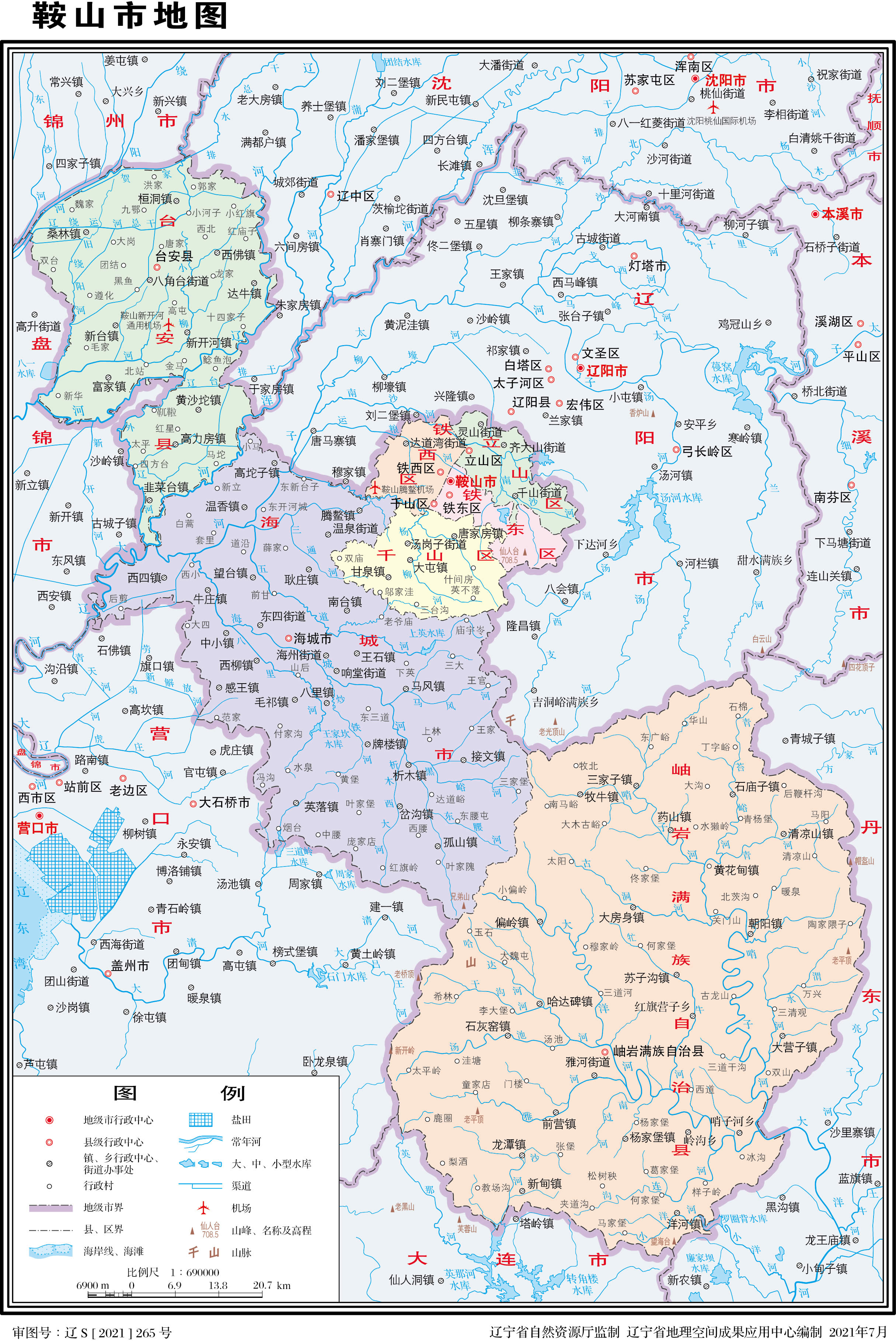 鞍山市轄4個(gè)區(qū)、1個(gè)縣、1個(gè)自治縣,代管1個(gè)縣級市: