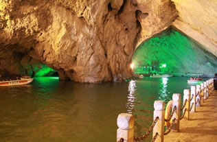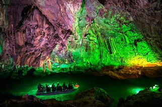 它們維妙維肖,形象逼真。特別是玉米塔、玉象和雪山三景,更是名實相符,幾可亂真。銀河兩岸鐘乳林立,石筍如畫,千姿百態(tài),光怪陸離,洞頂空窿鐘乳高懸,晶瑩斑斕,神趣盎然,沿河景點達100余處,千姿百態(tài),各具特色,泛舟其中,如臨仙境,這是水與石渾然天成的神秘洞穴,是迄今世界上已發(fā)現(xiàn)的最長可乘船游覽的地下暗河。