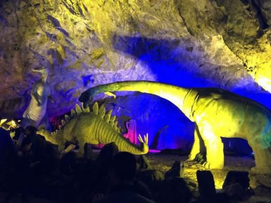 洞盡頭是一泓清潭,深不見底,水氣襲來,令人凄神寒骨,F(xiàn)利用旱洞獨特的資源,經(jīng)人工改造成為古生物宮,采用先進的聲、光、電技術,再現(xiàn)了古生物的進化演變過程,是游覽和科普教育的最佳景觀。
