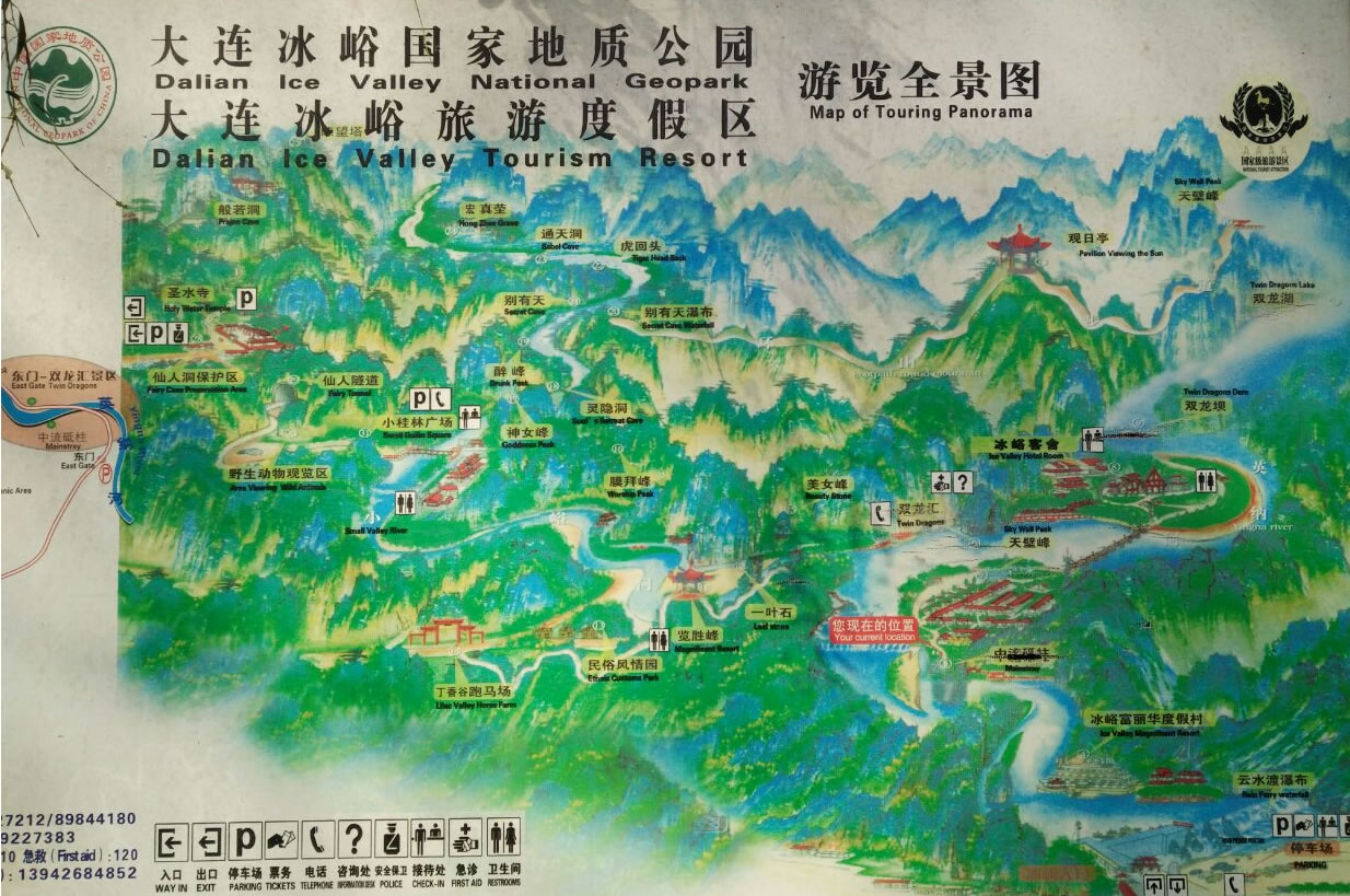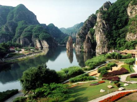 所謂北溝,指的是英納河流經(jīng)的溝谷,而南溝則是指小峪河流經(jīng)的溝谷,冰峪的主要景點(diǎn)大都被兩條河貫穿著。英納河是滿語“因納輝”的音譯,意為美麗的地方,河長94.9公里,是莊河境內(nèi)最長的一條河流。莊河市的淡水資源占大連地區(qū)首位,而英納河的淡水則在莊河市的首位。為了增加碧流河水庫的容量,大連市已于2001年5月引英納河的水進(jìn)入了碧流河水庫。據(jù)化驗(yàn),在英納河水中含有23種微量元素,具有抗癌和健身爽膚等多種功效。冰峪石林地貌比較集中,山峰連成一片,而有的地方卻是孤峰突兀,頗有點(diǎn)小桂林的味道。又有人稱其為“天然大盆景園”,因?yàn)榫皡^(qū)內(nèi)有“大象吸水”、“金雕”、“豬馱龜”等許多奇景。