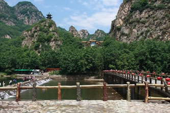 冰峪溝風(fēng)景區(qū)位于莊河市北部山區(qū)仙人洞鎮(zhèn)境內(nèi),距大連市內(nèi)有240公里。景區(qū)規(guī)劃面積約有110平方公里,景區(qū)面積約47平方公里。龍華、攔馬、莢蓉三山屏蔽,英納、小峪兩河盤繞。這里林木參天,山清水秀,宛如江南風(fēng)景,素有“遼南小桂林”之美稱。冰峪溝的風(fēng)景既不同于桂林山水,又不同于黃山云海,以其獨(dú)特的風(fēng)格和韻味呈現(xiàn) 在東北遼南的一隅。