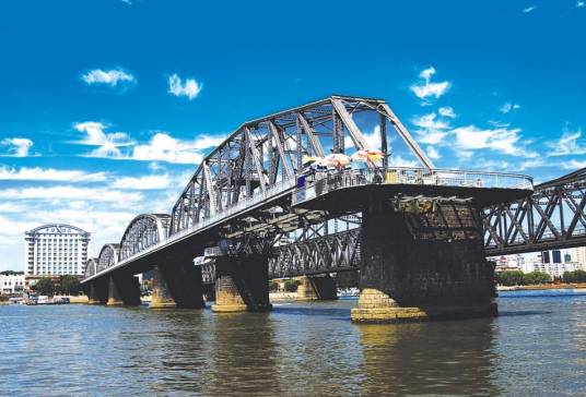鴨綠江斷橋,位于中國遼寧省丹東市振興區(qū)江岸路鴨綠江畔,是原鴨綠江大橋被炸毀后的殘余部分,是國家AAAA級景區(qū)鴨綠江風(fēng)景名勝區(qū)重要的標志性建筑。鴨綠江斷橋為12孔可開閉式鐵路橋,橋長944.2米,寬11米,12孔,其中第4孔為“開閉梁”,可旋轉(zhuǎn)開合。