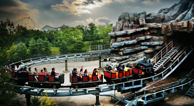 維蘇威火山是大型火山探險(xiǎn)項(xiàng)目,游客乘坐著礦山車高速穿梭在蜿蜒盤旋的火山內(nèi),險(xiǎn)象環(huán)生。巨大的轟鳴聲在山體中回蕩,礦山車快速行駛,車身大角度傾斜,同時(shí)伴隨著忽明忽暗的快速變化。因車子是由慣性在軌道上行駛,坐在后排的游客將體驗(yàn)到比前排的游客更為刺激的感覺,而坐在前排的游客將體驗(yàn)到第一個(gè)感受到刺激的感覺。歷時(shí)170秒左右的驚險(xiǎn)歷程,使你感受到前所未有的刺激,讓你不得不盡情釋放你的歡笑和尖叫。