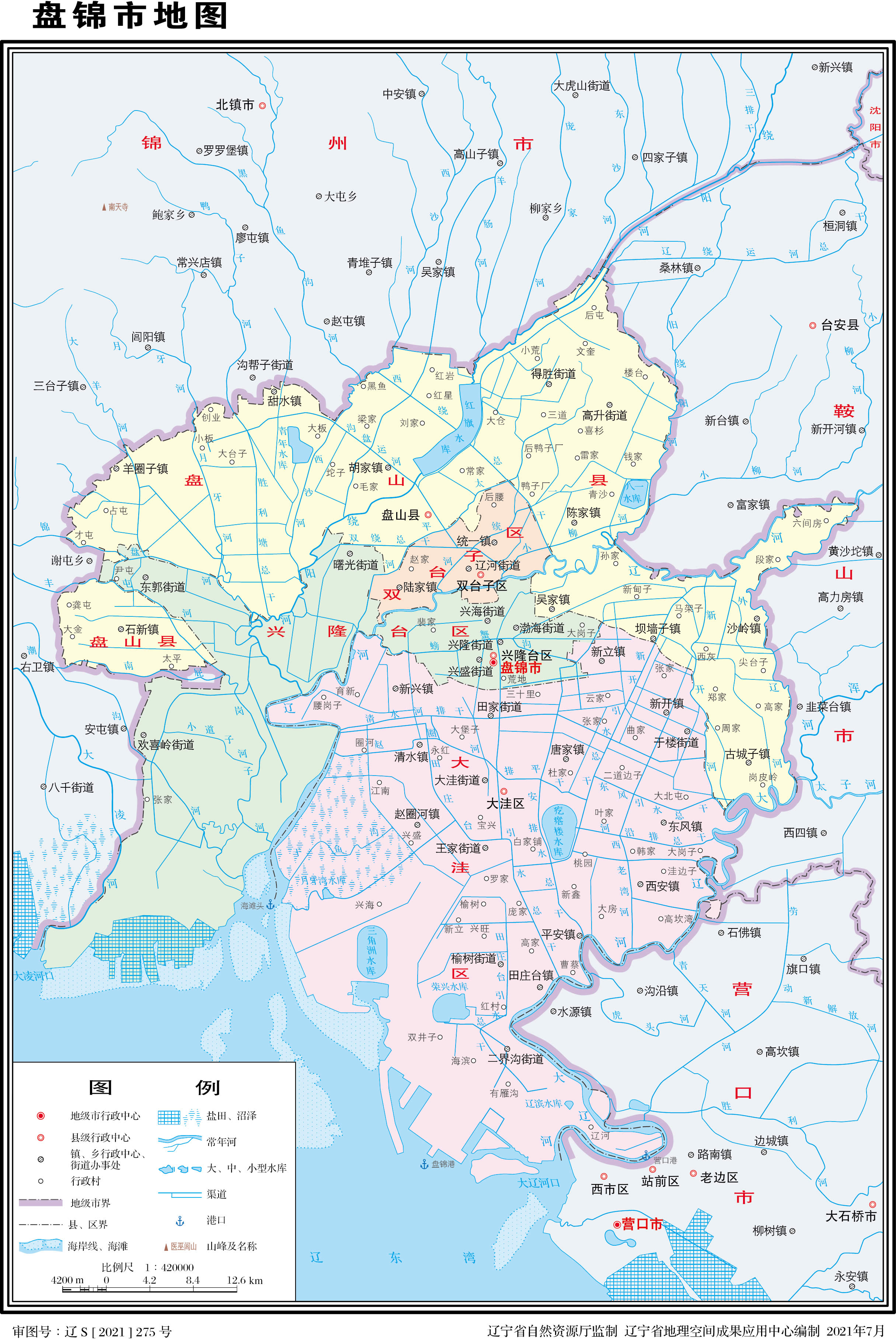 1975年11月,盤錦地區(qū)與營口市合并。原地區(qū)所轄盤山區(qū)、大洼區(qū)改為盤山縣、大洼縣,均屬營口市轄。同時將臺安縣劃歸鞍山市。