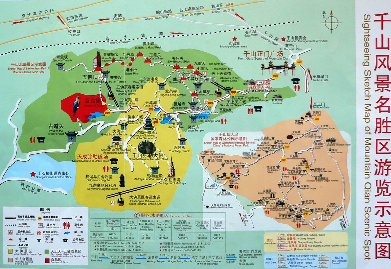 千山南臨渤海,北接長白山,群峰拔地,萬笏朝天,以峰秀、石峭、谷幽、廟古、佛高、松奇、花盛而著稱,具有景點密集、步移景異、玲瓏剔透的特色。