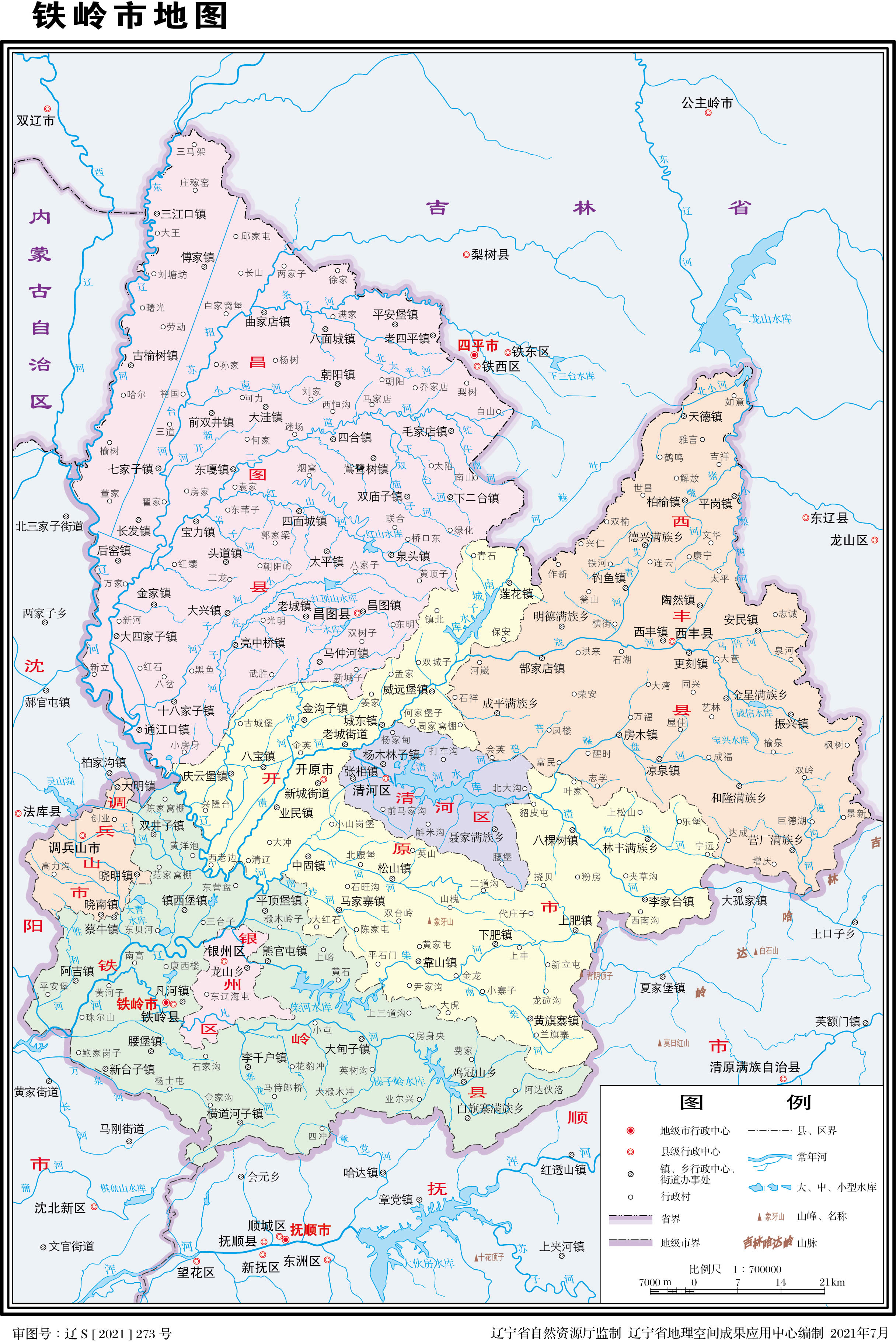 鐵嶺市轄2個市轄區(qū)、3個縣,代管2個縣級市: