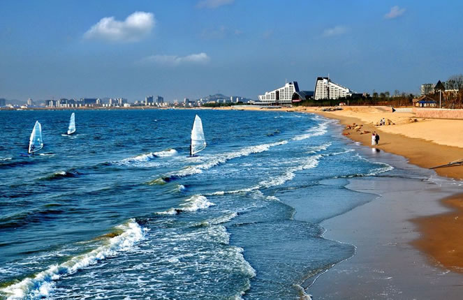 白沙灣黃金海岸(國家AAAA級(jí)風(fēng)景旅游區(qū))地處蓋州市歸州辦事處、九壟地辦事處西部,全長14.7公里,距蓋州市區(qū)46公里,距高速公路(熊岳站出口)8公里,濱海公路貫穿園區(qū)。面臨渤海,以海域風(fēng)光為主,海岸蜿蜒,沙灘細(xì)軟,形如新月,景色壯麗。白沙灣是一個(gè)在綠樹掩映之下的海濱浴場,人稱“東北第一灘”。