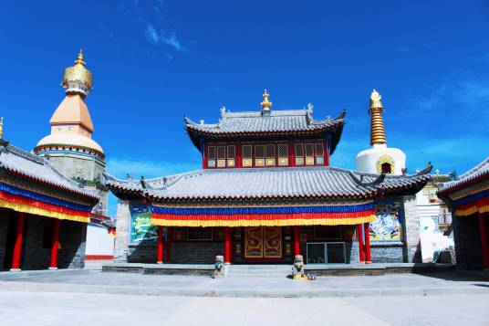 廟內(nèi)的佛塔結(jié)構(gòu)造型獨(dú)特,全世界僅存三處。召內(nèi)設(shè)有薩尼拉僧經(jīng)學(xué)院,棟克爾拉僧歷法院?,珠德巴拉僧焚理院三所學(xué)術(shù)性機(jī)構(gòu)。