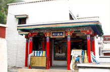 原名努尼殿,是供僧人靜坐休持的殿,用于喇嘛們以逐漸減少飲食,靜坐默誦,力圖不食不語的修行方式去解脫超度眾生靈。后來毀于文革動亂。2003年國家撥款在遺址上恢復(fù)并擴(kuò)建此殿,2005年9月開始對外開放,全殿上下兩層,一樓為佛堂,供有千手千眼觀音像、六世班禪大師、宗喀巴大師像,正中供奉的三世佛為銅鑄鍍金佛像。墻上所繪壁畫是藏傳佛教九大佛寺壁畫。