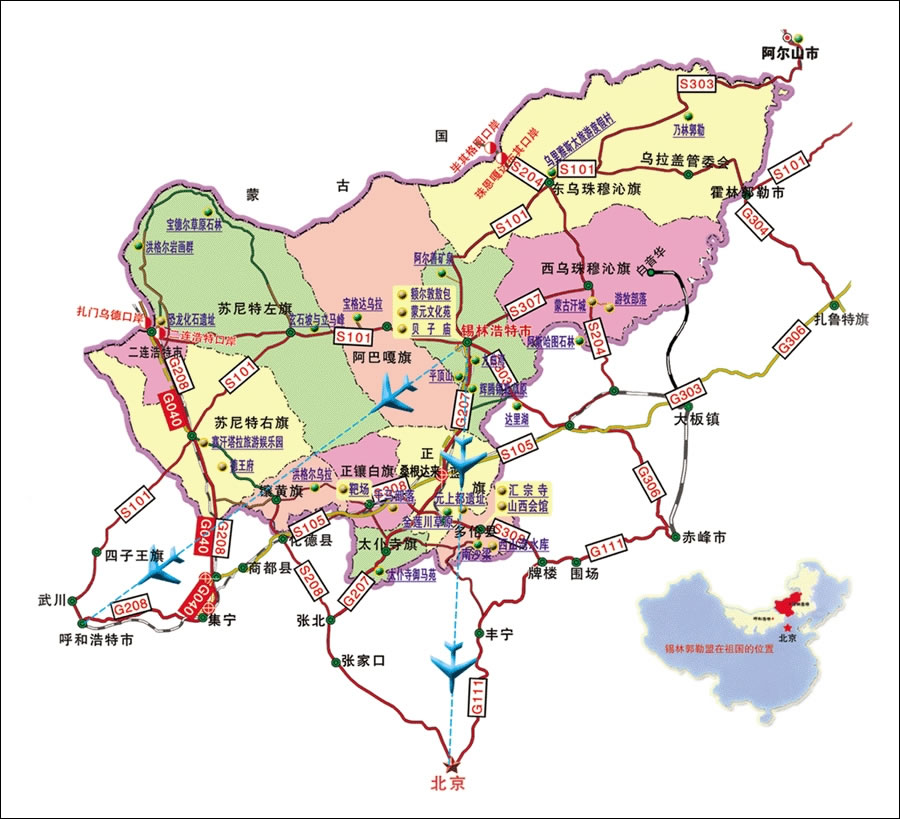 4 個小時左右可進入錫林郭勒草原, 7 個小時左右可到達錫林浩特市,北京至錫林浩特航班僅用 40 分鐘即可到達,交通十分便利。盟內(nèi)通信便捷暢通,并已建成盟、旗(縣)、蘇木(鄉(xiāng))、嘎查(村)四級農(nóng)村牧區(qū)信息服務(wù)網(wǎng)絡(luò),其中