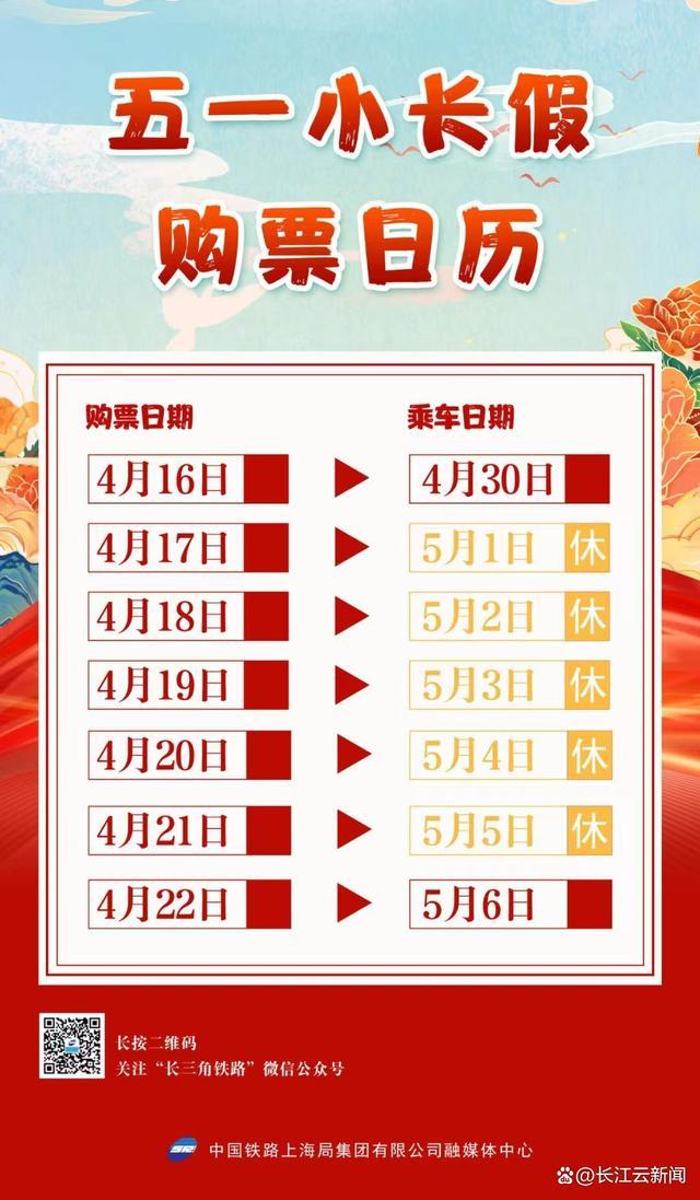 4月16日,五一小長(zhǎng)假前一日(4月30日)火車票正式發(fā)售。2024年五一小長(zhǎng)假自5月1日至5月5日止,共5天。根據(jù)目前鐵路客票提前15天預(yù)售的規(guī)則類推,4月16日開售4月30日火車票;4月17日開售5月1日假期首日火車票;4月21日開售5月5日假期最后一天火車票。