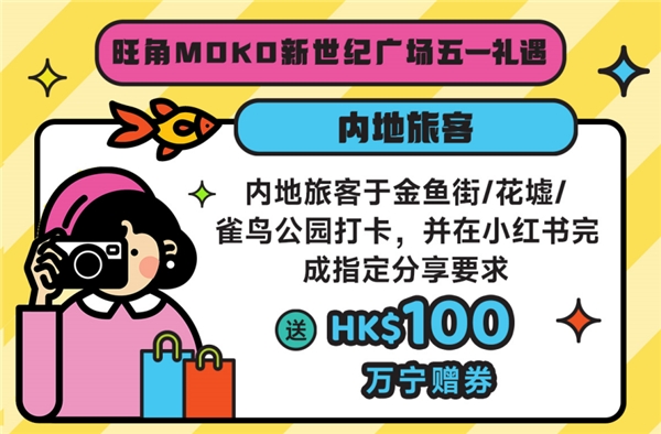 針對(duì)游客需求的變化,香港政府推出相關(guān)扶持政策,以支持區(qū)域特色打卡發(fā)展。以香港最著名的旅游區(qū)、購物區(qū)和美食區(qū)旺角為例,為了迎接內(nèi)地游客,香港政府在金魚街、花墟、雀仔公園設(shè)置不同打卡裝置。當(dāng)?shù)氐纳虉鲆餐ㄟ^各種舉措歡迎內(nèi)地游客。旺角地標(biāo)MOKO新世紀(jì)廣場面向內(nèi)地游客推出專享優(yōu)惠“日夜打卡繽紛禮”,于以上景點(diǎn)打卡分享到小紅書社交媒體及完成指定要求,可免費(fèi)領(lǐng)取總值100港幣的萬寧贈(zèng)券一份,一鍵PO出雙倍快樂。